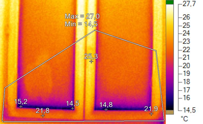 Najnižšia teplota nameraná na ráme okna bola 14,5 °C.